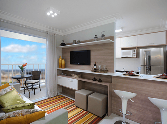 84,22 m² garden, com 2 dorms, 1 suíte e 1 vaga, sendo 57,86m² + 26,36m² com varanda privativos