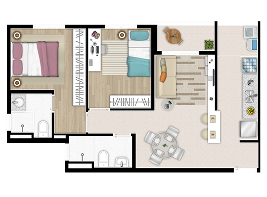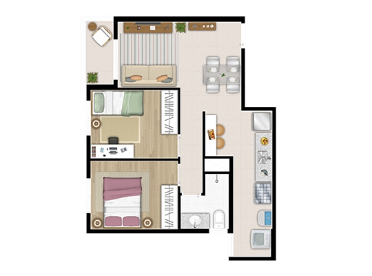 54,00 m² privativos 02 dorms. – 1 vaga coberta – 75 unidades