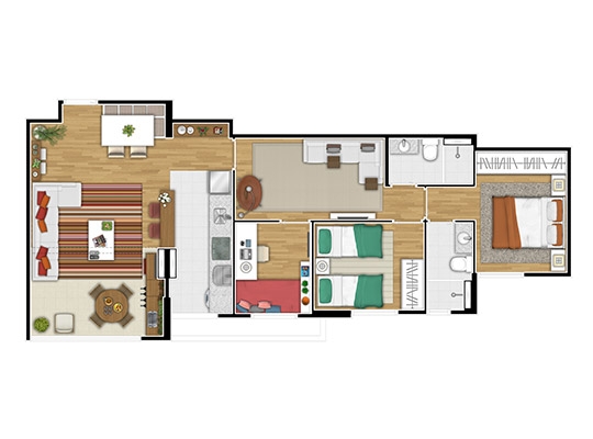 01 apartamento com 70,00m² de 3 dormitórios, 2 WC e 01 Lavabo.