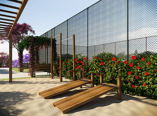 Área de lazer: Quadra Gramada – Playground – Salão de Festas – Churrasqueira – Redário – Academia Externa e Praças